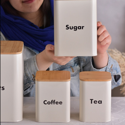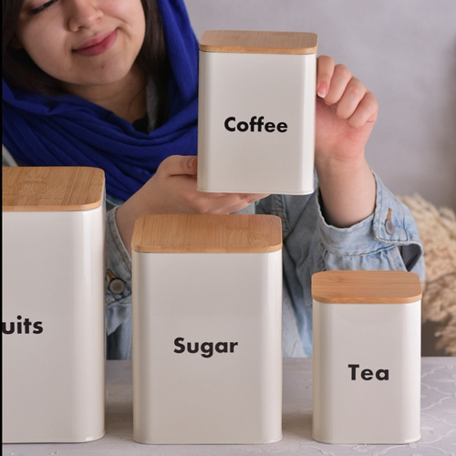 بانکه تکست گالوانیزه درب بامبو در 2 سایز بزرگ و 2 سایز کوچک میباشد. تکست ها شامل :(بیسکوییت ،شکر،قهوه و چای)متریال با کیفیت بالا مناسب مواد غذایی درب واشر دار و کاملا کیپ میشه.